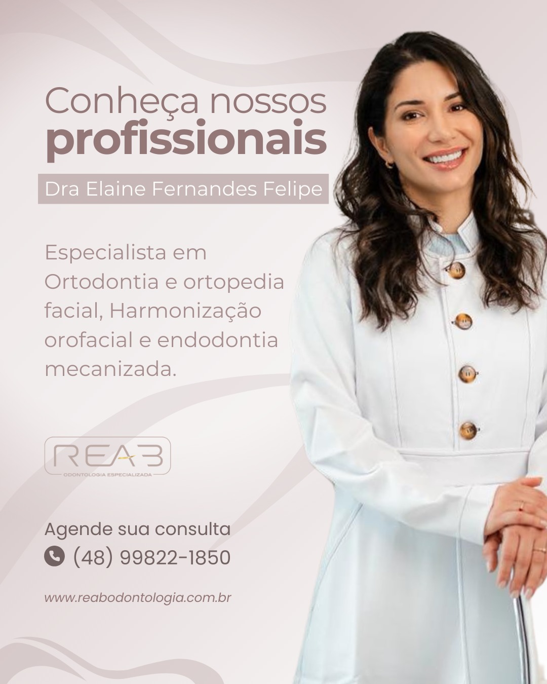 Encantada com a atenção da Clínica Reab! Profissionais qualificados, ambiente acolhedor e tratamento personalizado. Recomendo a todos em busca de excelência em odontologia